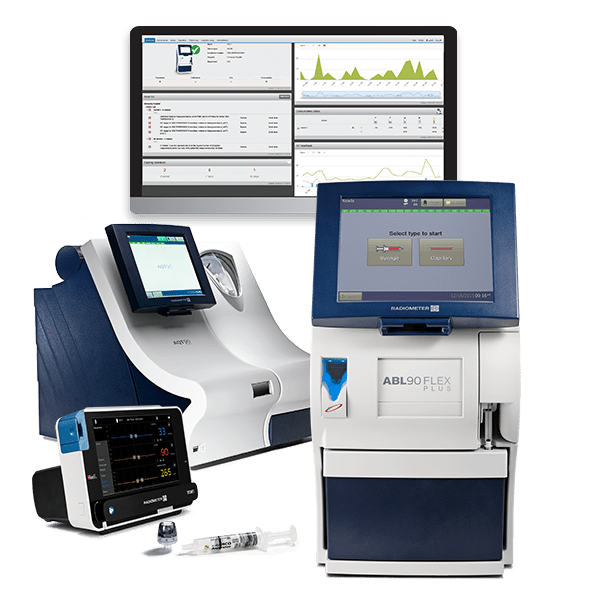 Bovenop 19 kritieke bloedgasparameters en 9 biomarkers biedt Radiometer een portfolio aan analysers voor bloedonderzoek, transcutane monitors en een point-of-care IT-oplossing die bloedafname en gegevensregistratie automatiseert en vereenvoudigt. Met: