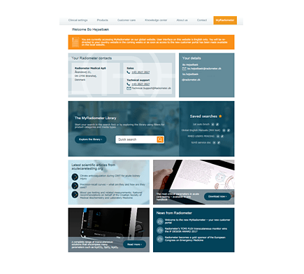 Als klant van Radiometer kunt u inloggen op ons klantenportaal. Hier vindt u in het downloadcentrum productgerelateerde informatie, waaronder gebruikshandleidingen, bijsluiters, brochures, productbladen, video's en veel meer. Wanneer u zich aanmeldt, dient het dashboard van het klantenportaal als belangrijkste toegang tot vele Radiometer-diensten.